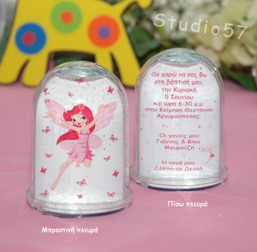 Προσκλητήριο βάπτισης χιονόμπαλα, σε σχήμα πεταλούδας.