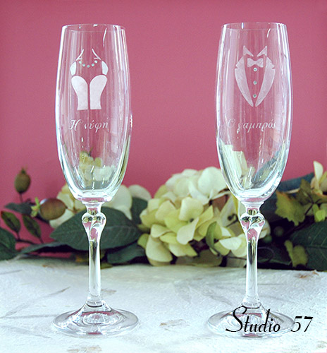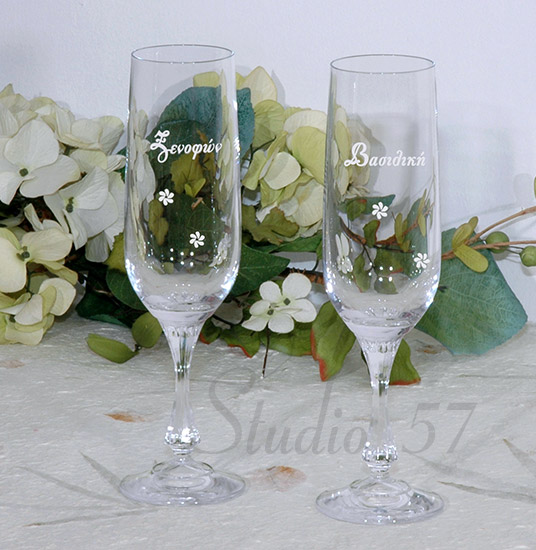 Χάραξη σε ποτήρια σαμπάνιας.