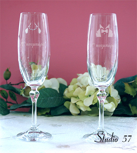 Πρωτότυπη χάραξη σε ποτήρια σαμπάνιας.