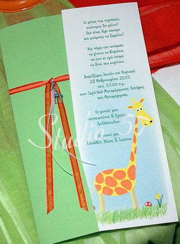 Προσκλητήριο βάπτισης καμηλοπάρδαλη,ΒΑ109165 |