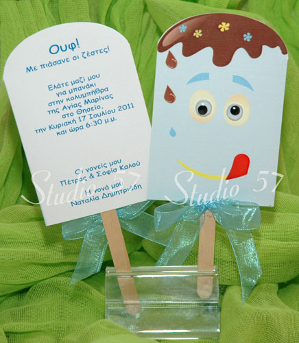 Προσκλητήριο βάπτισης παγωτό ξυλάκι,ΒΑ123156 |