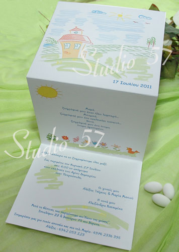 Προσκλητήρια για όλα τα γούστα. Έτοιμες προτάσεις με μεγάλη θεματολογία και τρόπους παρουσίασης ,ωστόσω μπορούμε να υλοποιήσουμε και τις δικές σας ιδέες. Παραδίδονται έτοιμα διακοσμημένα.