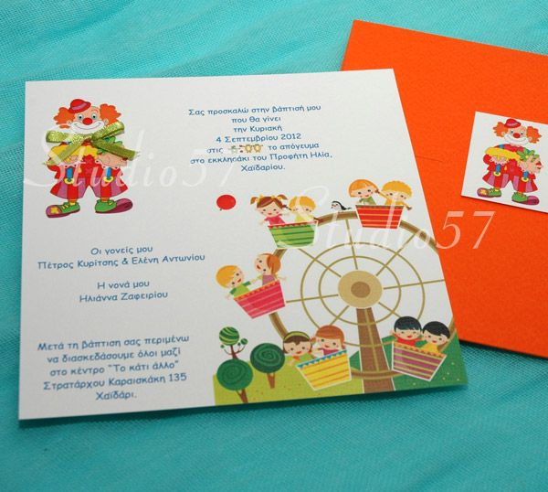 Προσκλητήριο βάπτισης κλόουν-τσίρκο ΒΑ131145 |