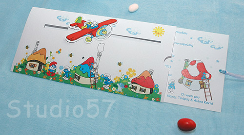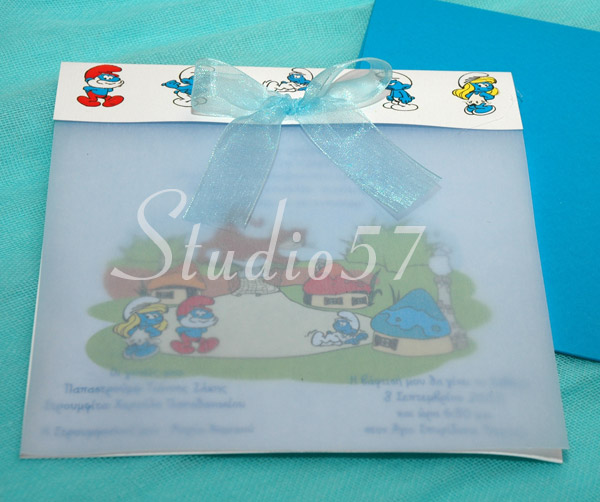 Προσκλητήριο βάπτισης στρουμφάκια. Κωδ. ΒΑ133 |