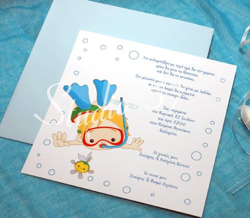 Προσκλητήριο βάπτισης μικρός δύτης. Κωδ. ΒΑ303 |