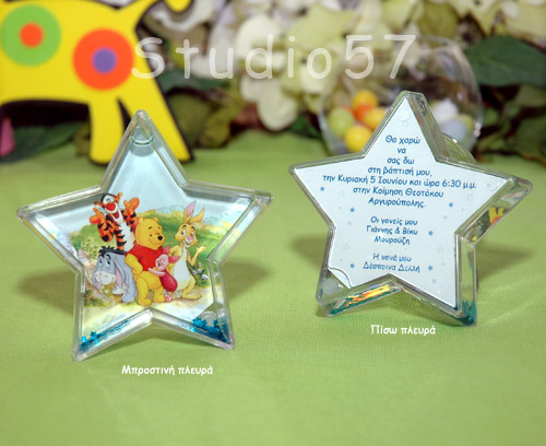 Προσκλητήριο βάπτισης χιονόμπαλα, σε σχήμα αστέρι. |