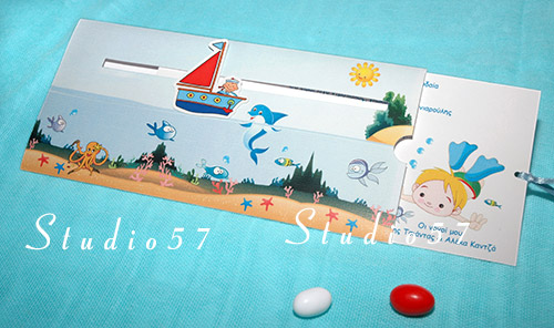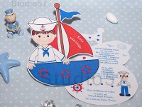 Προσκλητήριο βάπτισης καραβάκι με ναυτάκι. Κωδ. ΒΑ232 |