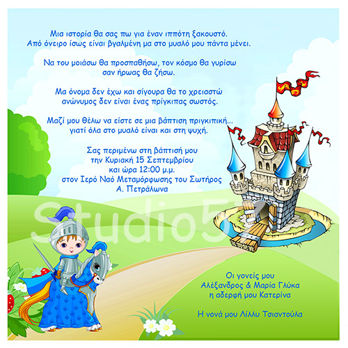 Προσκλητήριο βάπτισης πρίγκιπας-ιππότης. Κωδ. ΒΑ308 |