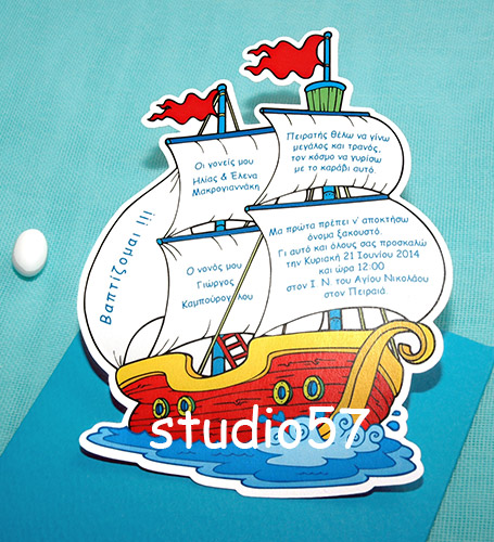 Προσκλητήριο βάπτισης πειρατικό καράβι. Κωδ. BA114 |