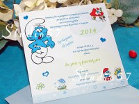 Προσκλητήριο βάπτισης στρουμφάκια. Κωδ. ΒΑ313 |
