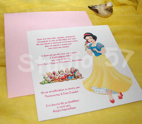 Προσκλητήριο βάπτισης Χιονάτη Κωδ. ΒΚ301