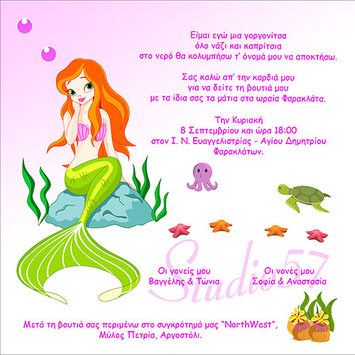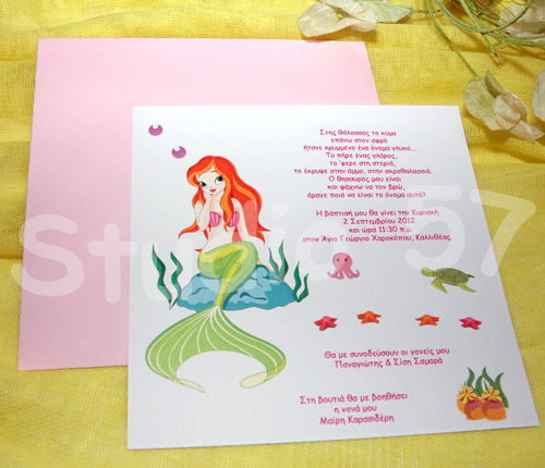 Προσκλητήριο βάπτισης γοργόνα. Κωδ. ΒΚ307a