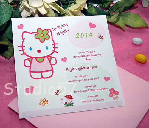 Προσκλητήριο βάπτισης Hello Kitty. Κωδ. ΒK314