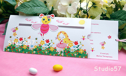 Προσκλητήριο βάπτισης μελισσούλα. Κωδ.ΒΚ310