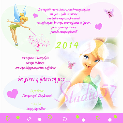 Προσκλητήριο βάπτισης Tinkerbell. Κωδ. ΒK312
