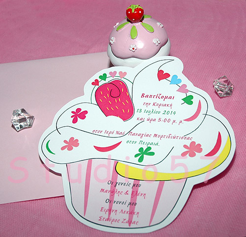 Προσκλητήριο βάπτισης Cupcake. Κωδ. ΒK413