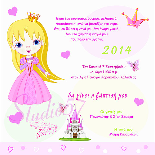 Προσκλητήριο βάπτισης πριγκίπισσα, ΒΚ228180