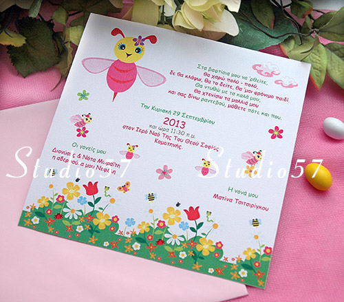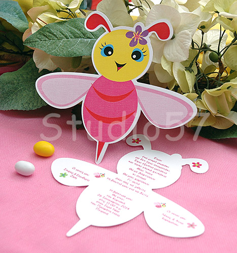 Προσκλητήριο βάπτισης μελισσούλα. Κωδ.ΒΚ233