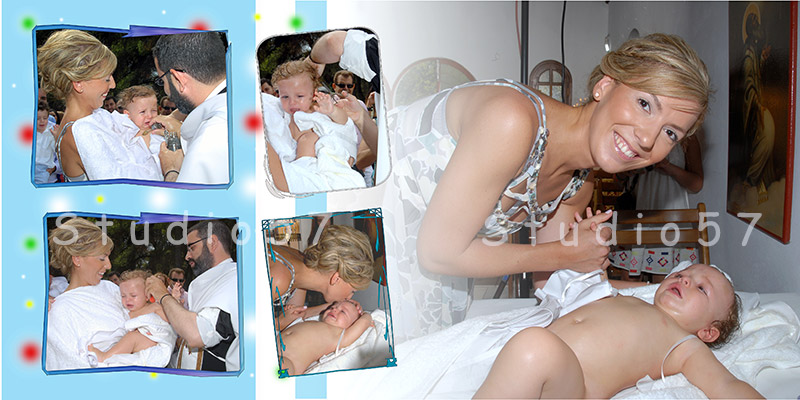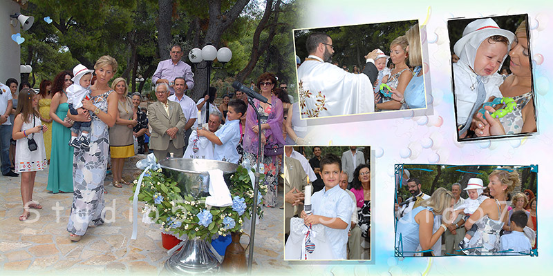 Την ημέρα της βάπτισης του παιδιού σας αποτυπώνουμε τις μοναδικές στιγμές και το χαμόγελό του με το καλύτερο τρόπο. Θα απολαύσετε μια μοναδική φωτογραφική και κινηματογραφική εμπειρία. Φωτογράφηση βάπτισης σύμφωνα με τις δικές σας προτιμήσεις. Μοναδικές μπομπονιέρες και προσκλητήρια βάπτισης μέσα από μια πλούσια γκάμα. Πολύχρωμες μπομπονιέρες βάπτισης και φανταστικά αξεσουάρ.